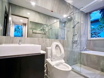 The condo is also close to renowned educational institutions such as Srinakharinwirot University, Australian International School, and NIST International School. Easily connect to multiple Sukhumvit alleys and Petchaburi Soi 38/1. Available for rent at 45,000 THB per month with a minimum one-year lease, requiring a 2-month deposit and 1-month advance rental.